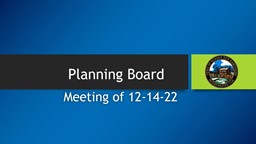 - Planning Board Meeting of 12-14-22